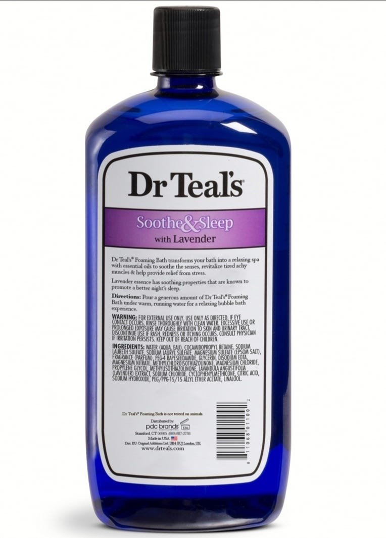 تحتوي تركيبته على مكونات مهدئة مثل اللافندر والبابونج والميلاتون، بالإضافة إلى مكونات مرطبة للبشرة مثل ملح إبسوم وزبدة الشيا والألوفيرا وفيتامين E.