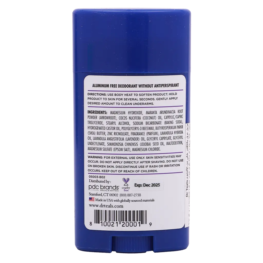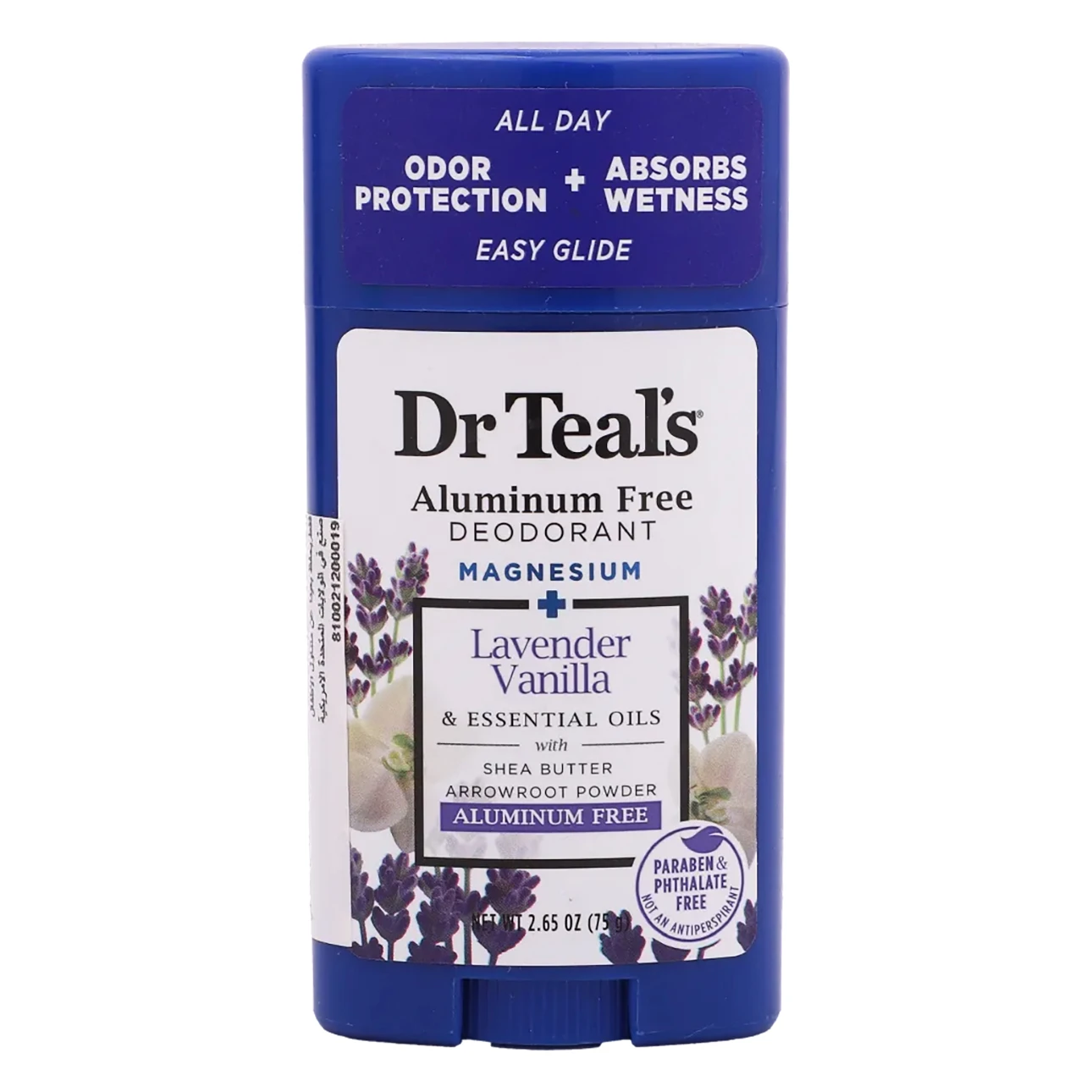 مزيل العرق من دكتور تيلز باللافندر والفانيليا هو منتج خالٍ من الألمنيوم مصمم لمكافحة الروائح وامتصاص البلل بشكل طبيعي. يأتي على شكل ستيك ويزن 75 جم، ومناسب للاستخدام اليومي.