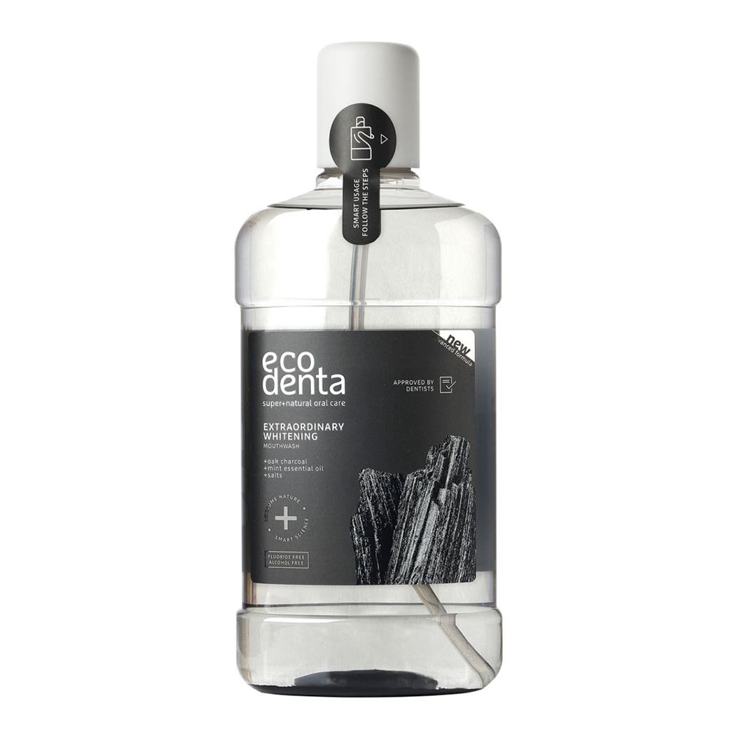 - غسول الفم المبتكر من ايكودينتا بخلاصة الفحم الأسود مصمم خصيصًا لتنظيف الأسنان يوميًا ولإعطاء تأثير فعال مبيض للأسنان.