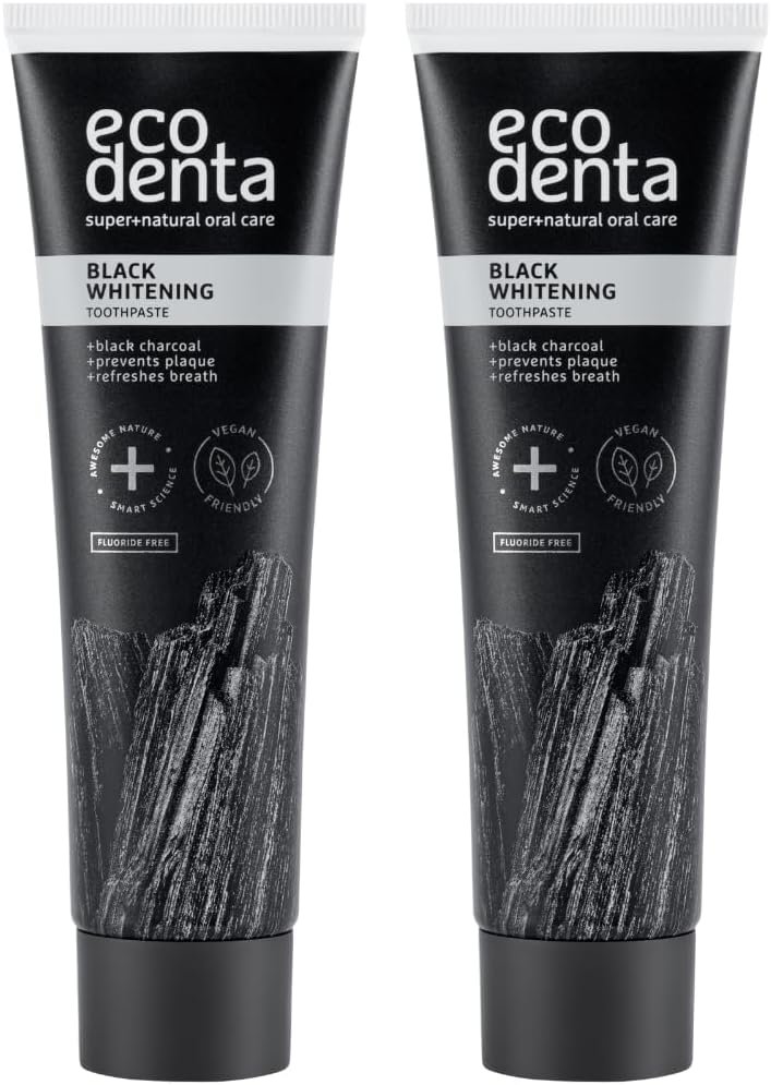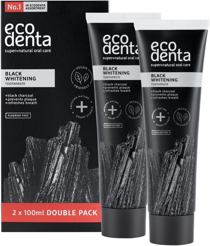 معجون طبيعي بالفحم الاسود لتبييض الاسنان من ايكودينتا عبوة قطعتين × 100 مل مضاد للبكتيريا